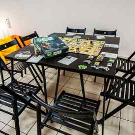 «Эволюция», «Каркассон», «Свинтус 2.0», «Алиас. Скажи иначе!», «Алиас — Party», «Дженга», «Манчкин» и разные его версии, «Уно», «Монополия», «Фликса», «Твистер», «Мозгобойня», «Ужас Аркхэма», «Колонизаторы» и многие-многие другие. Пользоваться всеми играми, а также приготовить себе чай-кофе можно абсолютно бесплатно. Если вы не умеете играть, то администратор и постоянные посетители тайм-клуба «1387» без проблем научат вас и ваших друзей!
